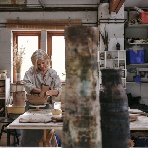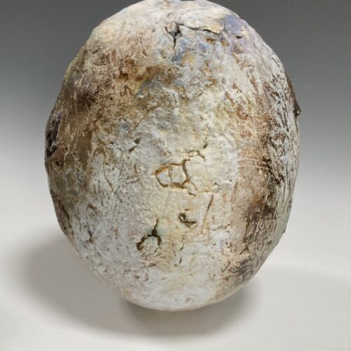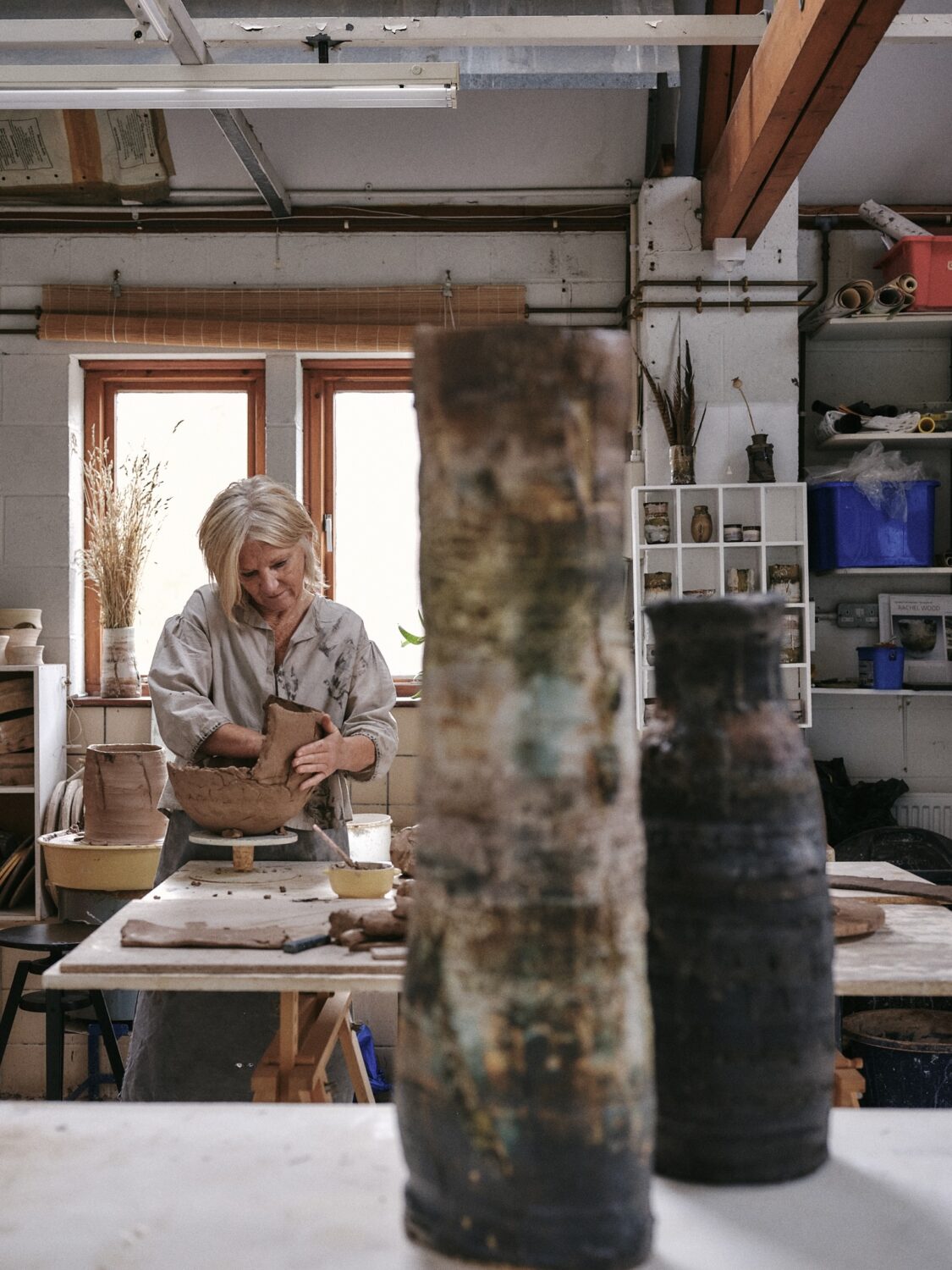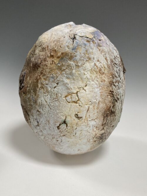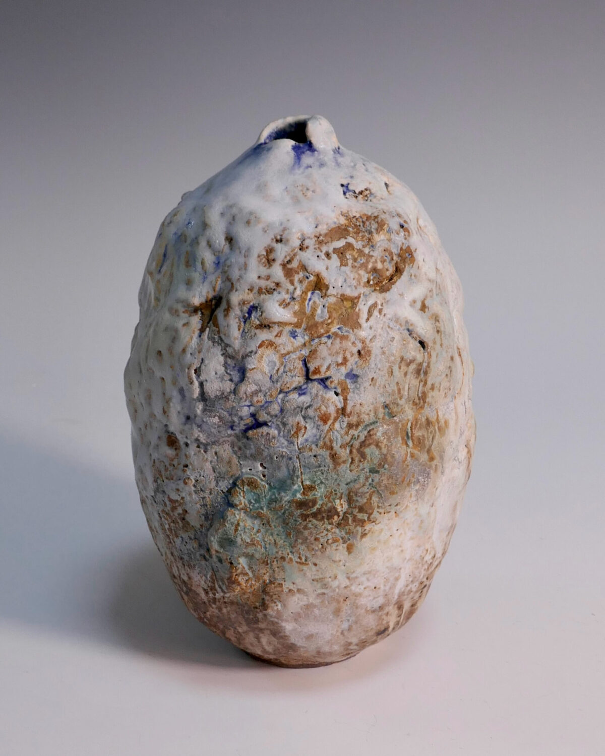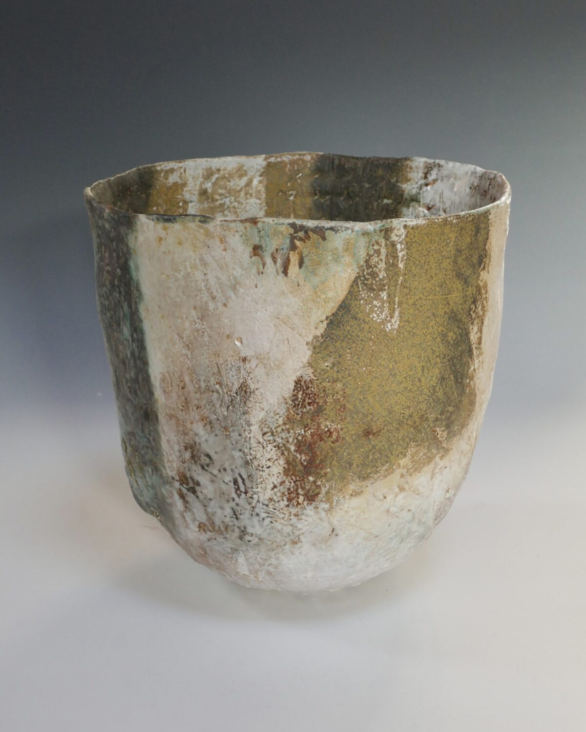 Her work, deeply tactile and emotionally resonant, bears the traces of her making process, finger-prints, tool marks, joins, rips, and draws inspiration from both the Derbyshire landscape near her home and the wild beauty of the Australian bush. A member of the Académie Internationale de la Céramique and the Craft Potters Association, she has won major awards including Germany’s Neue Keramik Prize (2016) and the Diessen Ceramic Prize (2017), and her pieces feature in international public collections in Denmark, Germany and Australia.