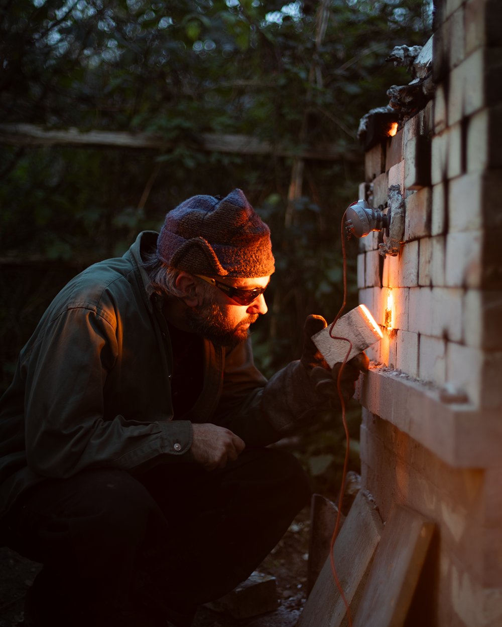 Jack Smith is a ceramicist based in Brighton whose practice centres on wood firing. He builds and fires wood kilns, using flame, ash, and atmosphere to shape his work and highlight the